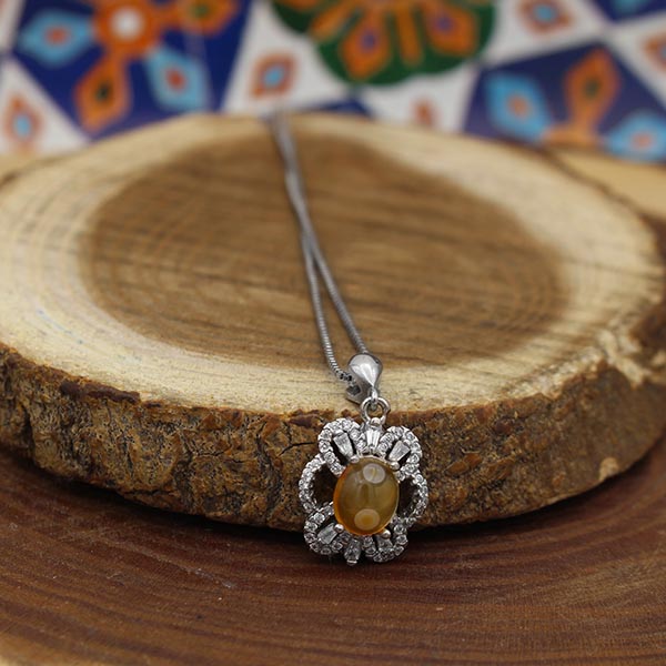 گردنبند عقیق باباقوری نقره زنانه طرح پیله