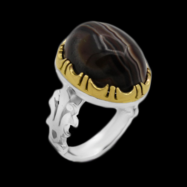انگشتر دور طلایی عقیق باباقوری نقره مردانه طرح رامک