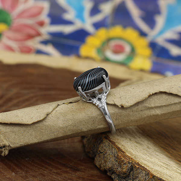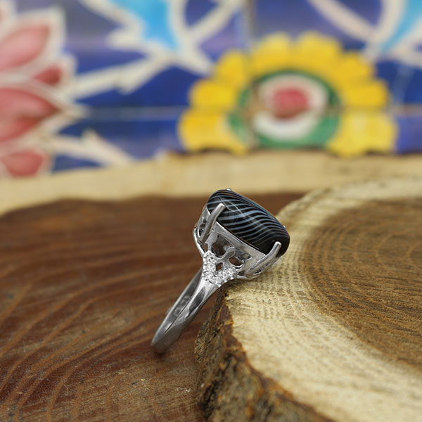 انگشتر عقیق سلیمانی نقره زنانه طرح رزمینا