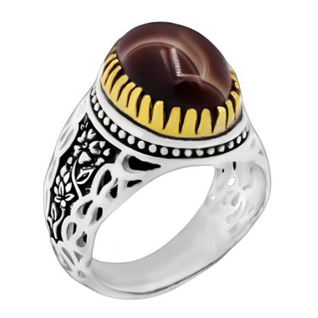انگشتر عقیق باباقوری نقره مردانه طرح دور طلایی سام