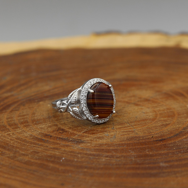 انگشتر عقیق سلیمانی نقره زنانه طرح یکتا