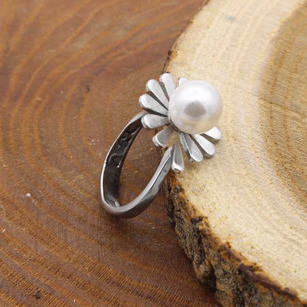 حلقه تک نگین نقره زنانه طرح بابونه