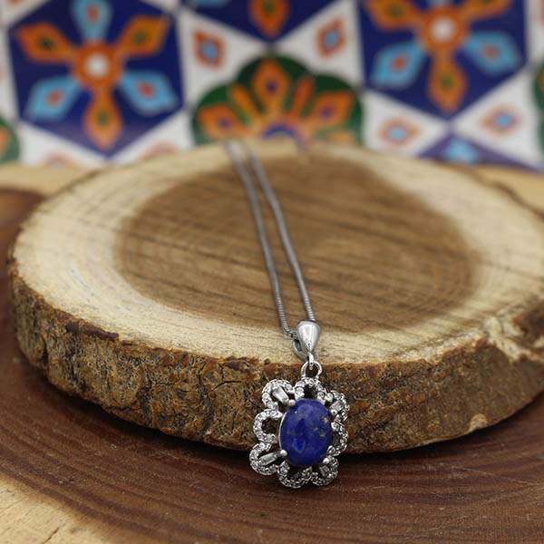 گردنبند لاجورد نقره زنانه طرح بنفشه