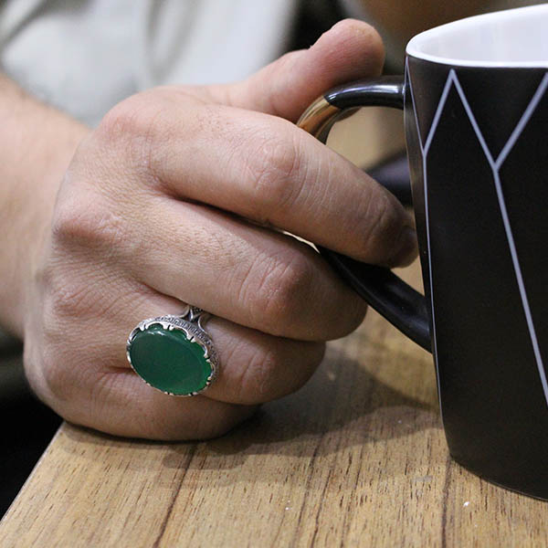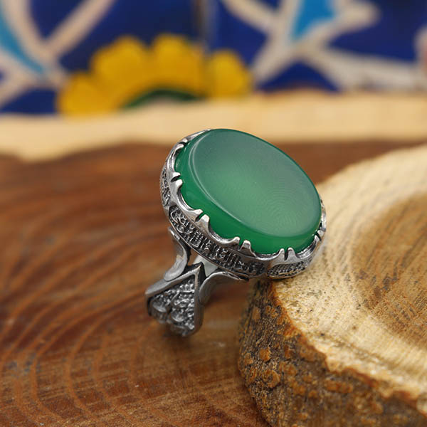 انگشتر عقیق سبز نقره مردانه طرح برسام