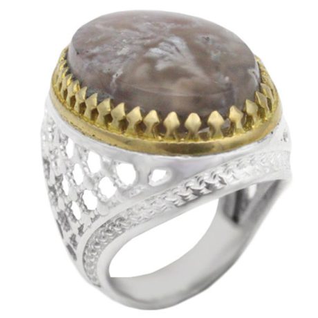 انگشتر عقیق شجر طرح باژین رکابی ساده و شکیل دارد. این رکاب مستطیلی شکل برش خورده و از نقره ۹۲۵ عیار و به دست هنرمندان انگشتر ساز ساخته شده است. جنس نگین این انگشتر عقیق شجر اصل و معدنی است که از انواع عقیق بوده و خواص معنوی بسیاری را داراست و از رنگی شیری و منحصر به فرد برخوردار است و تعدادی رگه مشکی رنگ به روی آن مشاهده میگردد که نقش شاخه های یک درخت را ایجاد کرده و نگینی محبوب و جذاب میباشد. همچنین پشت نگین این انگشتر با نقره پوشانده شده است و در آن حرز امام جواد (ع) و تربت امام حسین (ع) قرار گرفته است. حرز و تربت بین نگین و نقره قرار گرفته و به هیچ وجه با دست در تماس نیست. عقیق از توصیه شده ترین گوهرهاست و از جانب پیامبر مکرم اسلام (ص) و ائمه معصومین (ع) بسیار مورد توجه قرار گرفته است. این انگشتر قابلیت سایز شدن برای هر سایز انگشتی را دارد.