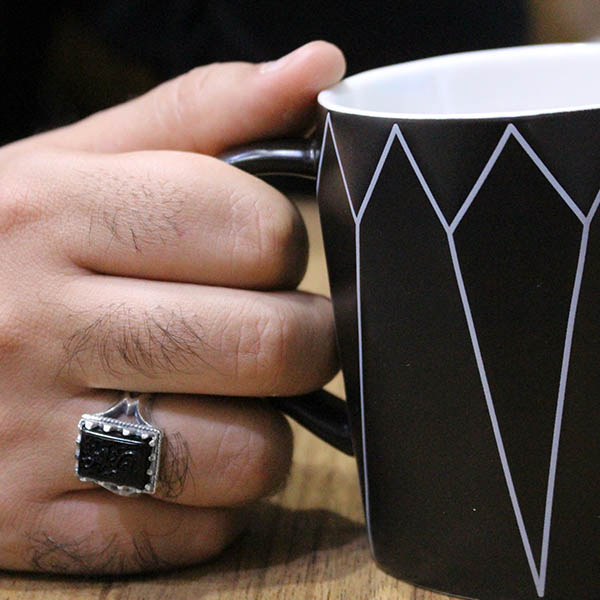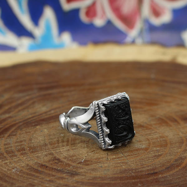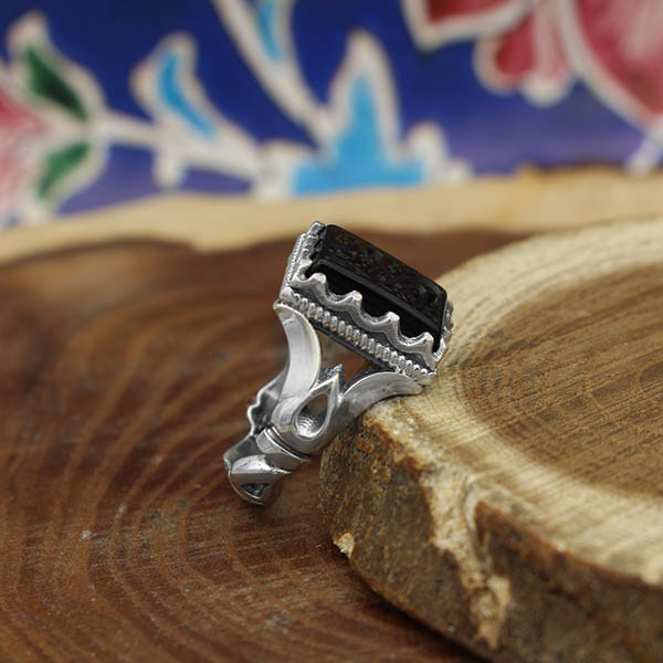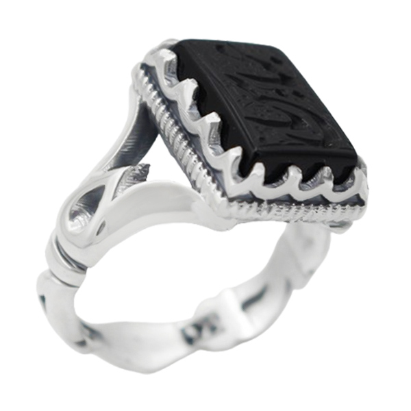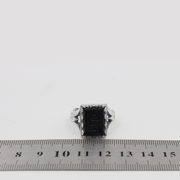 انگشتر عقیق مشکی نقره مردانه طرح علمدار + حکاکی