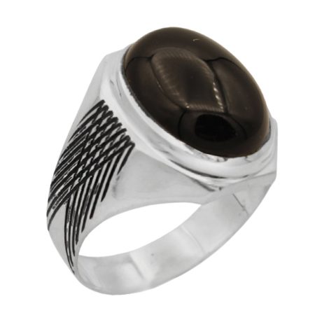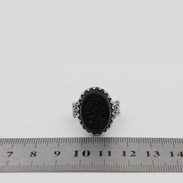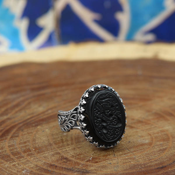 انگشتر عقیق مشکی نقره مردانه طرح اسد + حکاکی حسبی الله