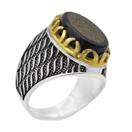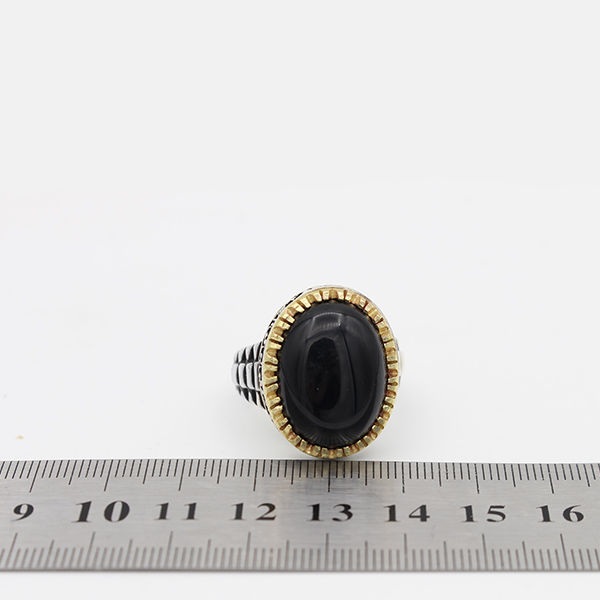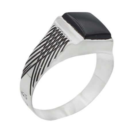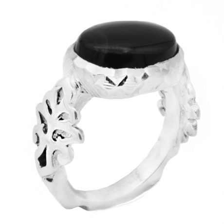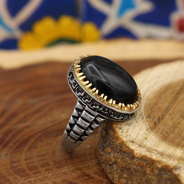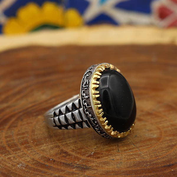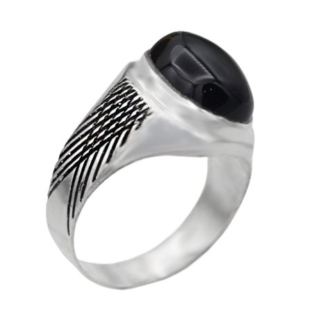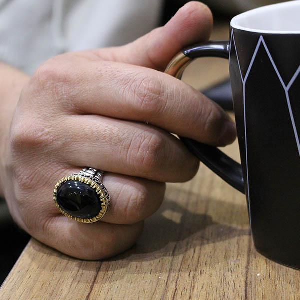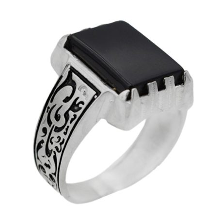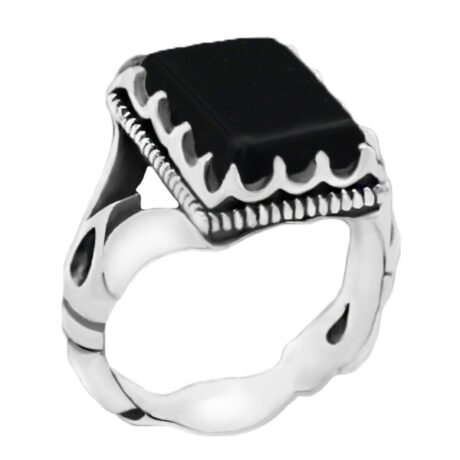 انگشتر عقیق مشکی نقره مردانه طرح آزاد