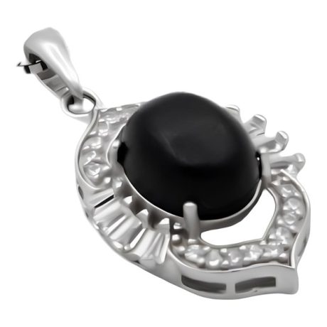 گردنبند در نجف سرمه از نقره با عیار ۹۲۵ ساخته شده است و طراحی فریم آن بصورت حلقه ای دو تیکه هست که با آبکاری رادیوم انجام شده بر روی آن میتواند گزینه خرید بسیار مطلوبی برای افراد دارای پوست حساس باشد. آبکاری رادیوم مقاومت بسیار خوبی نسبت به خراش و سایش و خوردگی دارد و باعث جلوگیری از بروز مشکلات پوستی نیز می شود. این آبکاری از کدر شدن نقره جلوگیری می کند و درخشش بیشتری را برای آن ایجاد می کند. نگین این محصول عقیق مشکی اصل معدنی است که جلوه بسیار خوبی به این گردنبند بخشیده است. در کنار همه ی این ها نمی توان از ظرافت مثال زدنی این محصول گذشت زیرا باعث تمایز هرچه بیشتر این کار نسبت به سایر محصولات شده است. توجه فرمایید که قیمت محصول بدون در نظر گرفتن زنجیر محاسبه شده است.