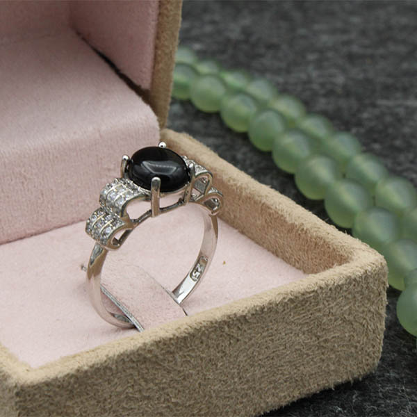 انگشتر عقیق مشکی نقره زنانه طرح بهرخ