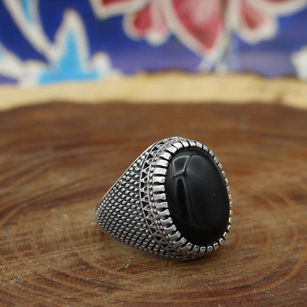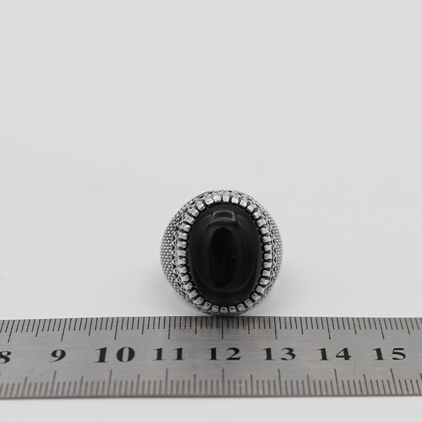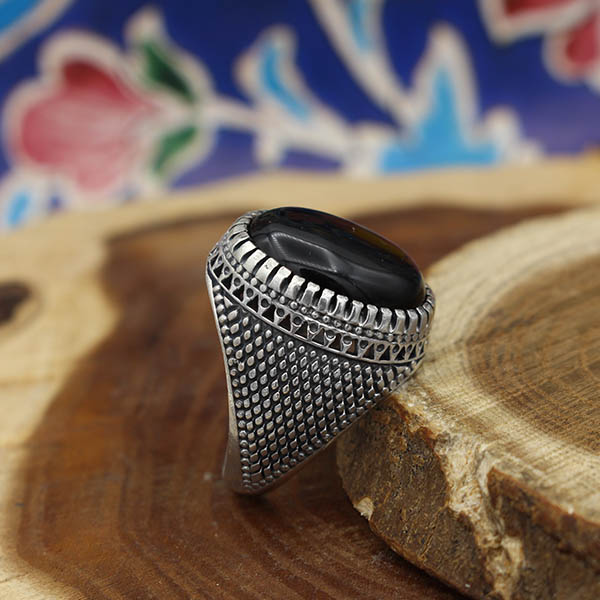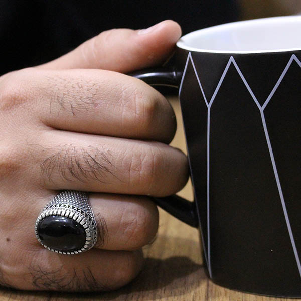 انگشتر عقیق مشکی نقره مردانه طرح حبیب