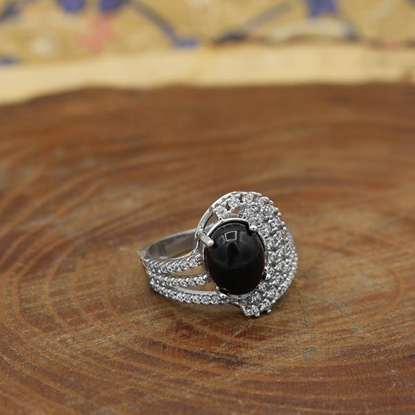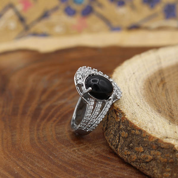 انگشتر عقیق مشکی نقره زنانه طرح لطیفه