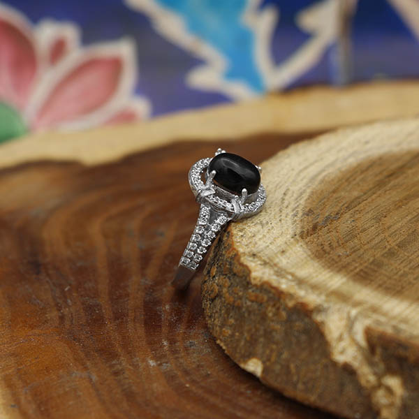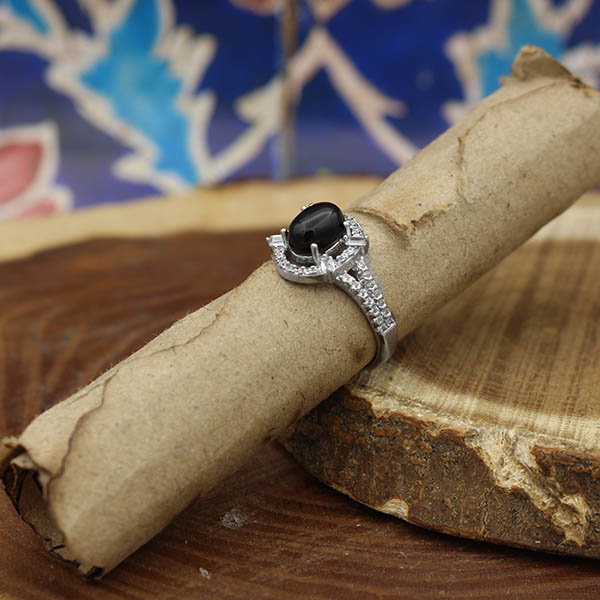 انگشتر عقیق مشکی نقره زنانه طرح مهسا