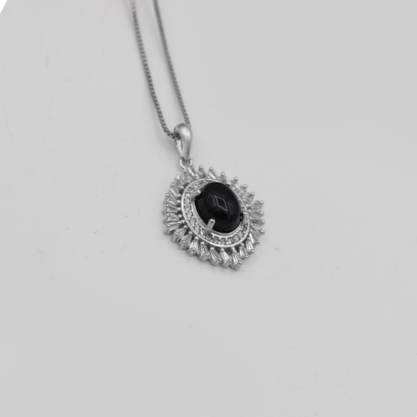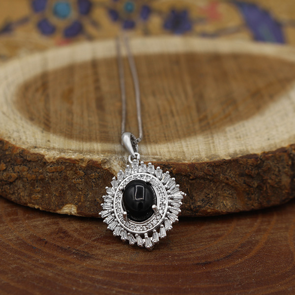 گردنبند عقیق مشکی نقره زنانه طرح مهسا