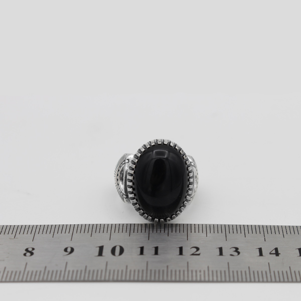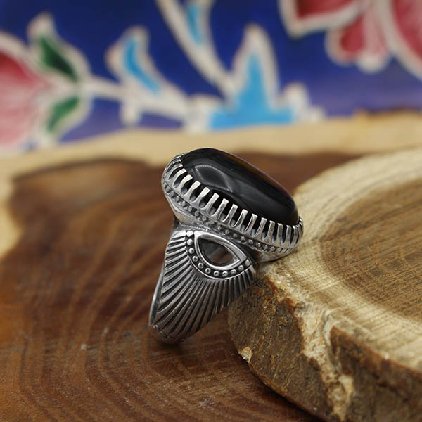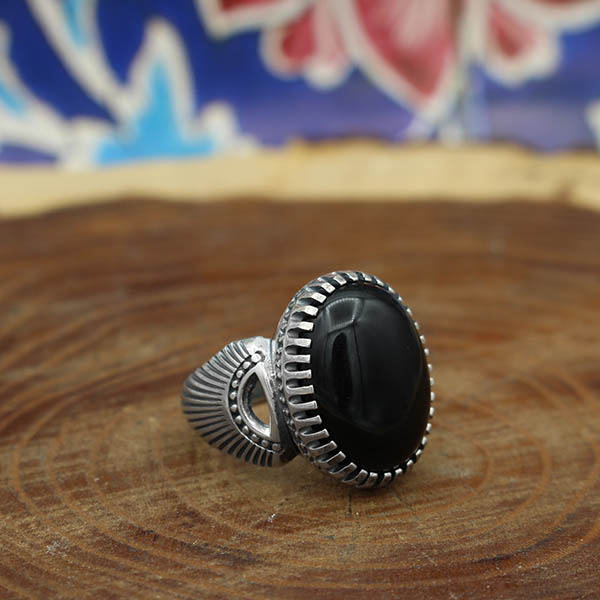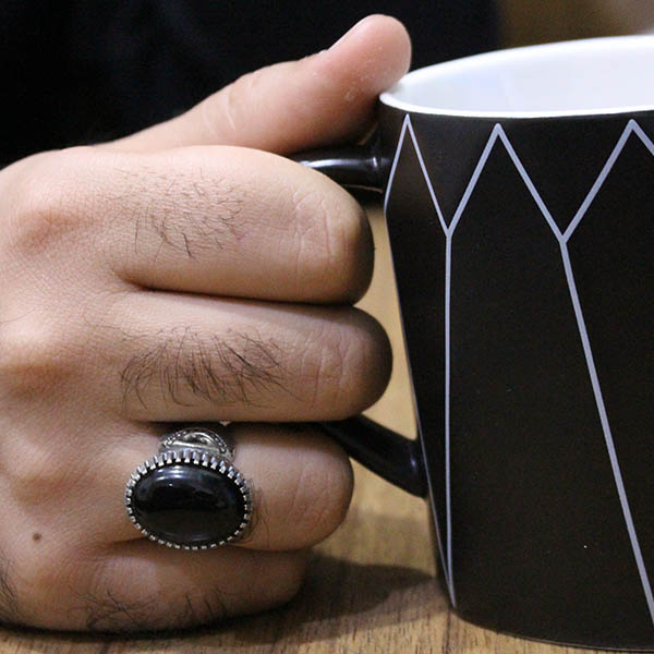 انگشتر عقیق مشکی نقره مردانه طرح مهرشاد