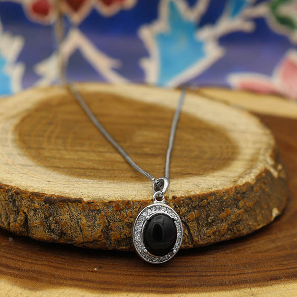 گردنبند عقیق مشکی نقره زنانه طرح نسرین