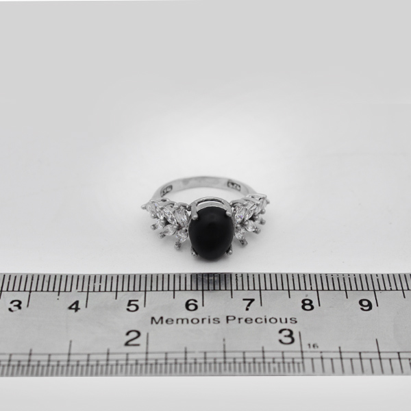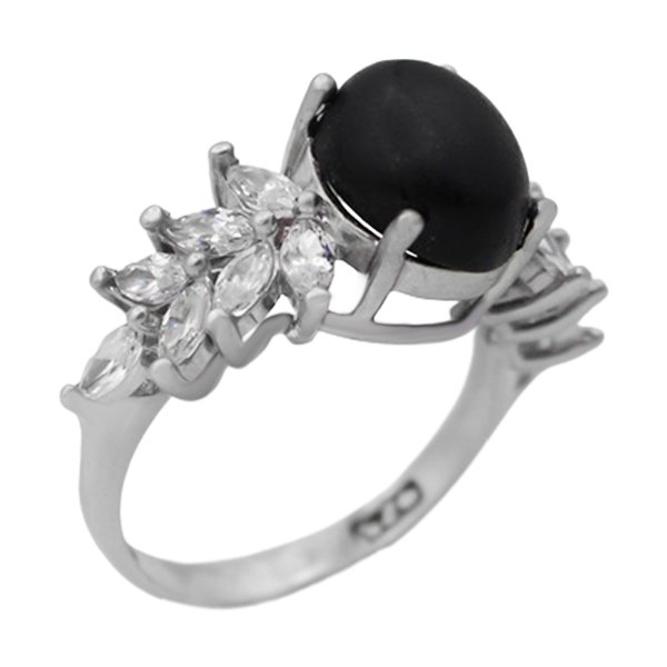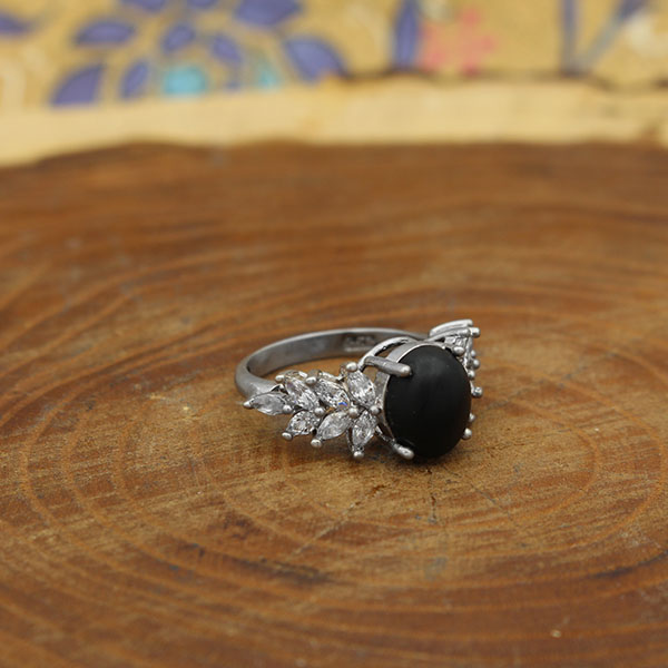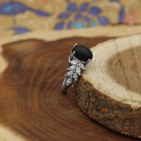 انگشتر عقیق مشکی نقره زنانه طرح پرستو