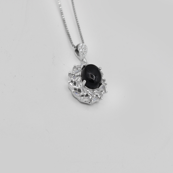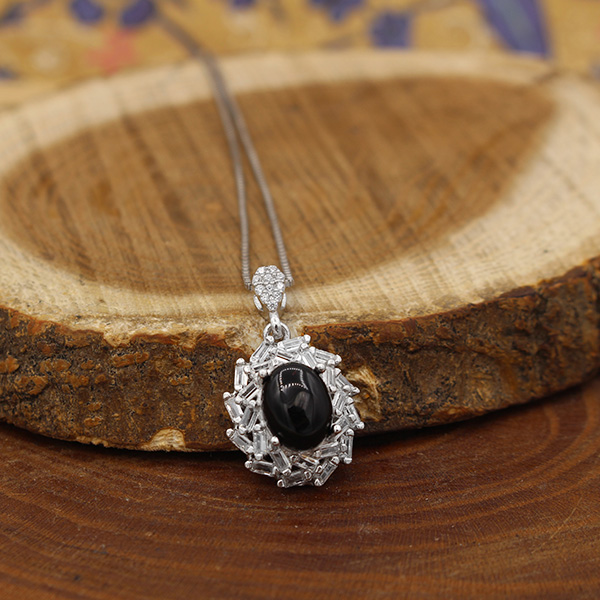 گردنبند عقیق مشکی نقره زنانه طرح پروانه