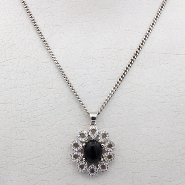 گردنبند عقیق مشکی نقره زنانه طرح ساتا