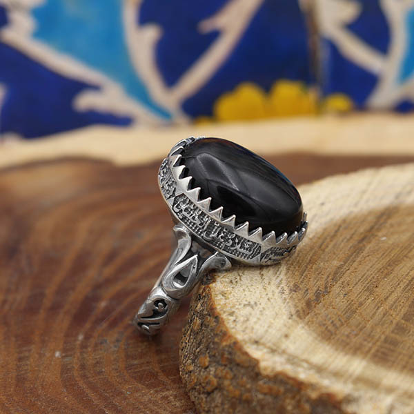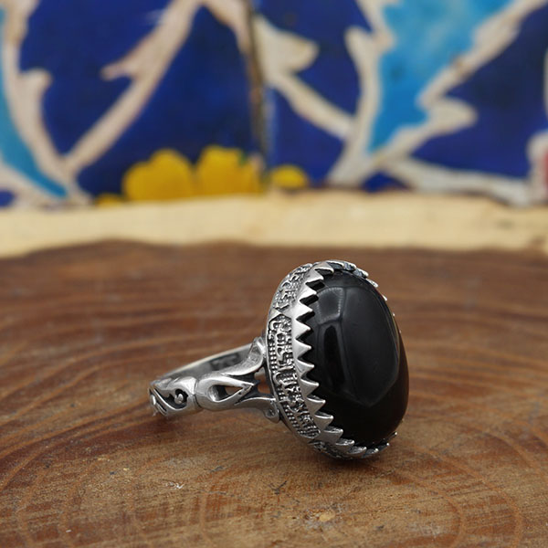 انگشتر عقیق مشکی نقره مردانه طرح سپهر