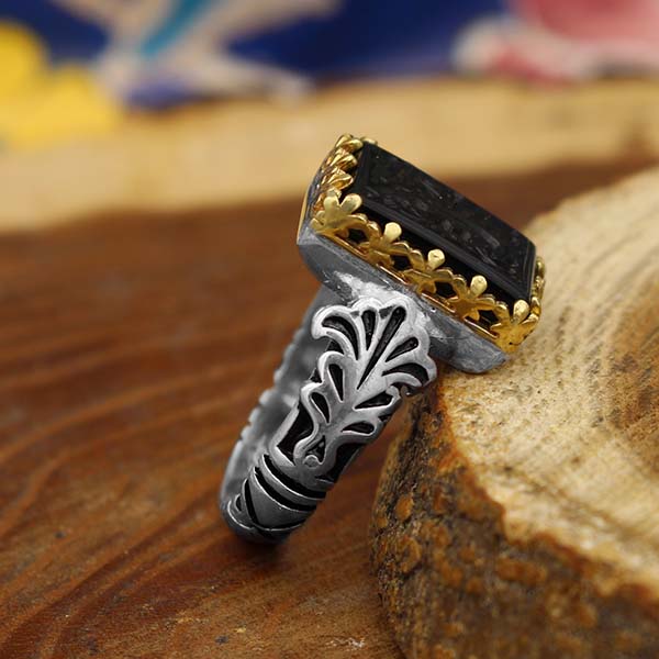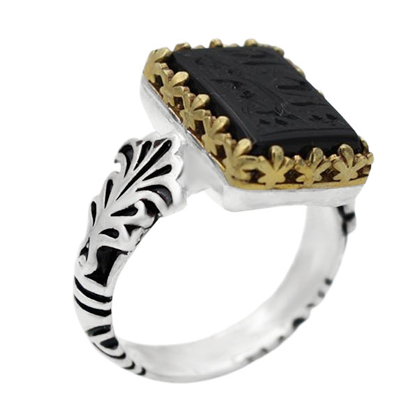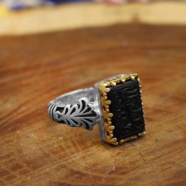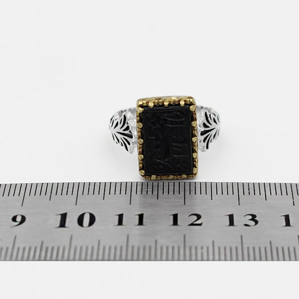 انگشتر عقیق مشکی نقره مردانه طرح شاهرخ