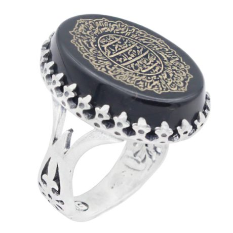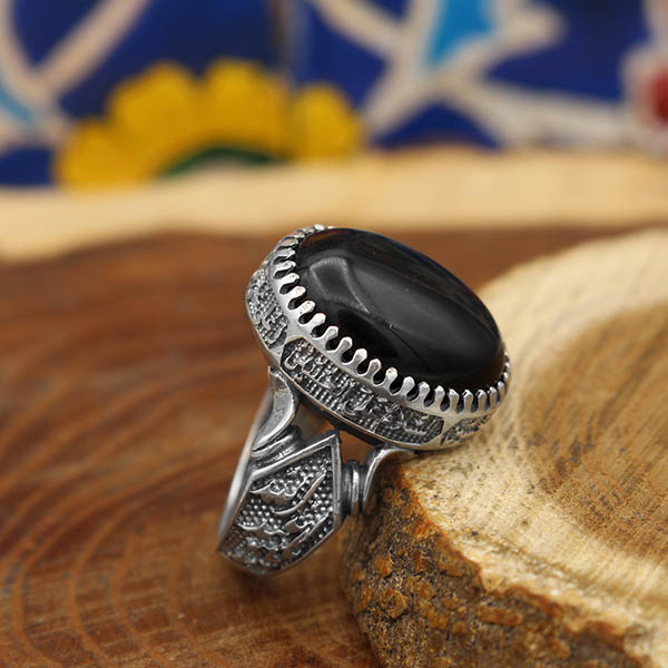 انگشتر عقیق مشکی نقره مردانه طرح سینا
