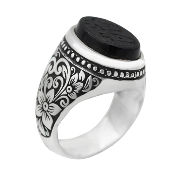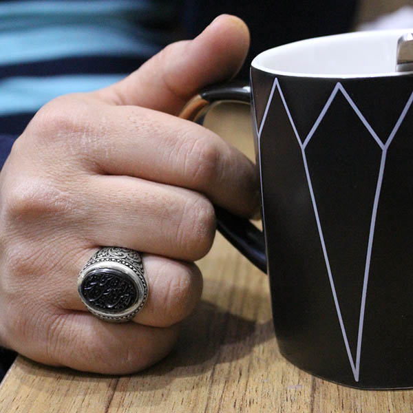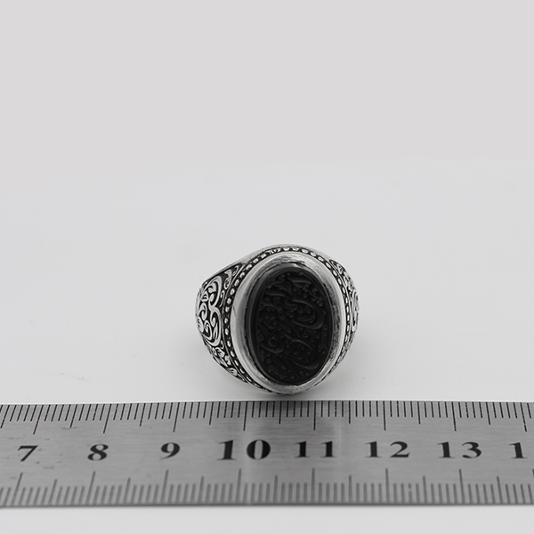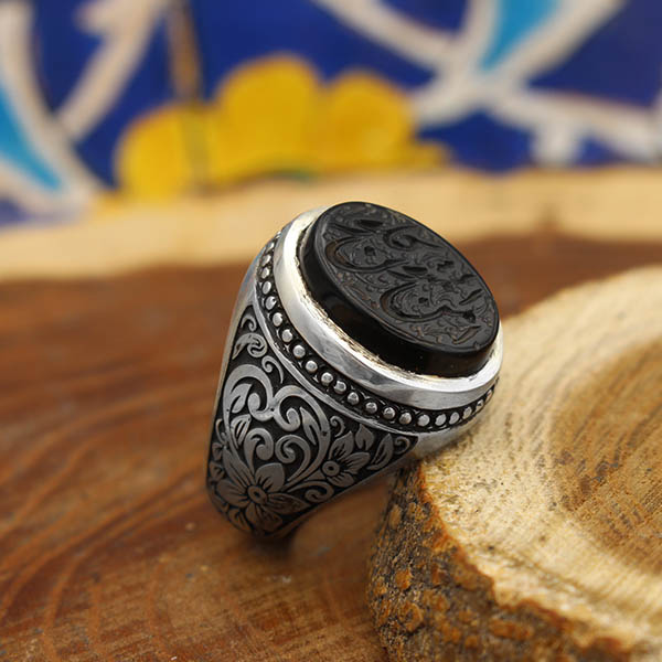 انگشتر عقیق مشکی نقره مردانه دست ساز طرح توکل + حکاکی امن المتوکلون