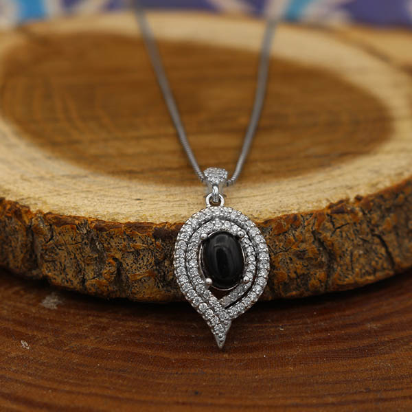 گردنبند عقیق مشکی نقره زنانه طرح تینا