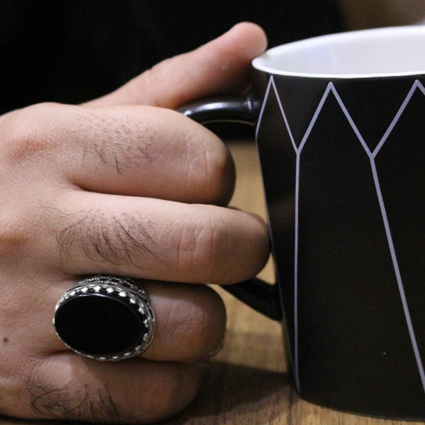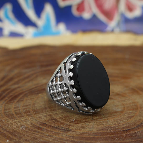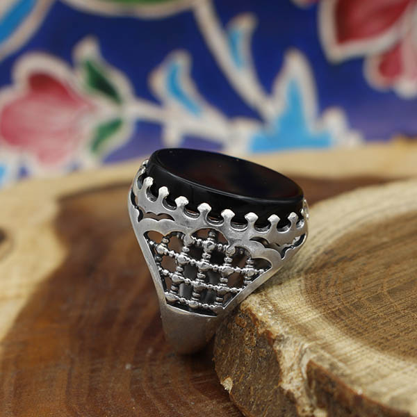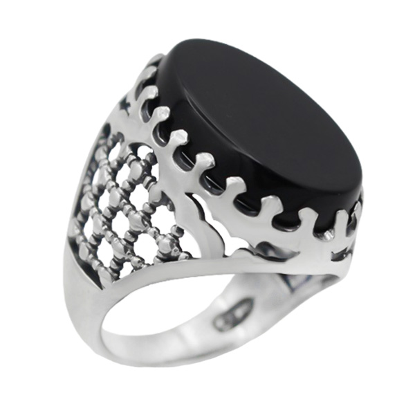 انگشتر عقیق مشکی نقره مردانه طرح یوحنا