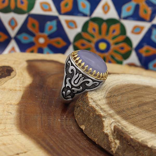 انگشتر عقیق کبود یمنی نقره مردانه طرح آرش