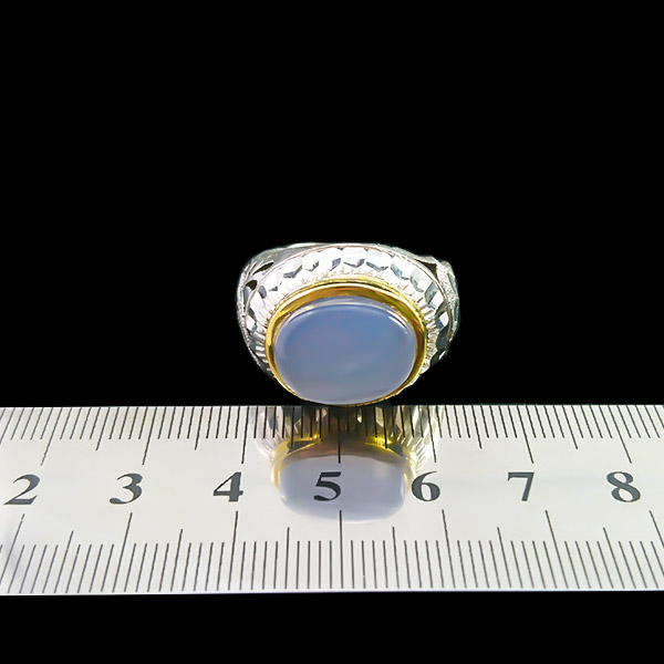 انگشتر مردانه دست ساز فاخر دور طلایی طرح بهاوند از نقره با عیار ۹۲۵ و با بالاترین کیفیت ساخته شده است. ترکیب رنگ طلایی چنگ ها با رنگ چشم نواز عقیق کبود یمنی اصل که به صورت بیضی شکل تراش خورده، جلوه بی نظیری را به وجود آورده است. ارزش بالای این محصول به نگین درشت عقیق کبود یمنی آن می باشد که با دقتی بسیار بر روی انگشتر کار شده است. همراه داشتن عقیق در روایات و کتب دینی معتبر بسیار توصیه شده و برای آن خواص و فواید روحی و جسمی بی شماری عنوان شده است. چنگ های این انگشتر به صورت ساده طراحی شده تا علاوه بر ظاهری زیبا، تصویری کامل از نگین این محصول به نمایش بگذارد. وجود طرح ها و نقش های برجسته بر روی رکاب و سطوح مختلف انگشتر، به خود نمایی و ارزش انگشتر افزوده است. این محصول در اندازه های مختلف قابل سایز شدن می باشد.