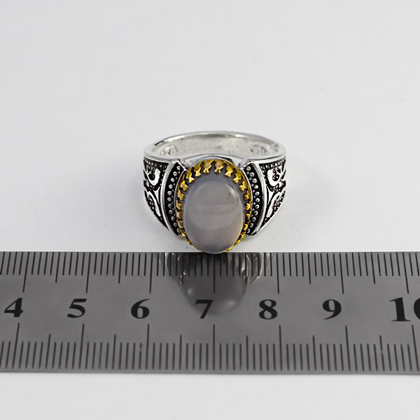 انگشتر عقیق کبود یمنی طرح دور طلایی ارمیا از نقره ای با عیار ۹۲۵ ساخته شده است. چنگ های طلایی رنگ این انگشتر از جنس برنج می باشد که تغییر رنگ نمی دهد و جلوه و جذابیت خاصی به محصول بخشیده است. این محصول دارای قلم کاری می باشد و از هنر سیاه قلم نیز استفاده شده است. جنس نگین سنگ عقیق کبود اصل و معدنی می باشد که علاوه بر خواص درمانی و رنگ کبودی که دارد از خواص معنوی بسیاری نیز برخوردار است و از جانب پیامبر اسلام نیز توصیه شده است. این انگشتر برای هر سایز انگشتی قابل سایز شدن می باشد.