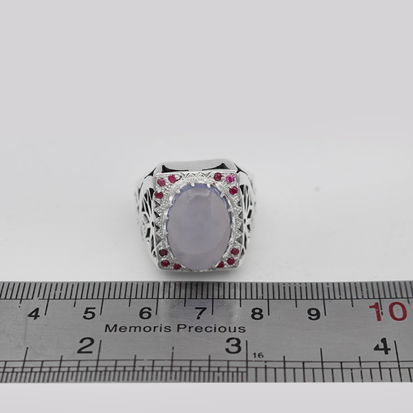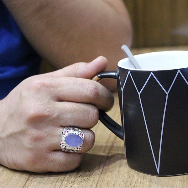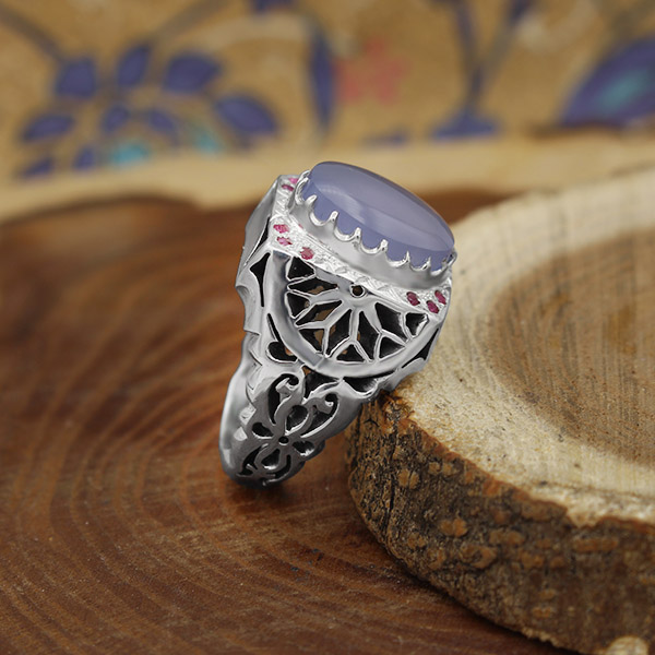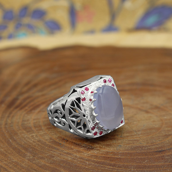 انگشتر عقیق کبود یمنی نقره مردانه دست ساز طرح رادین + 12 قطعه یاقوت سرخ
