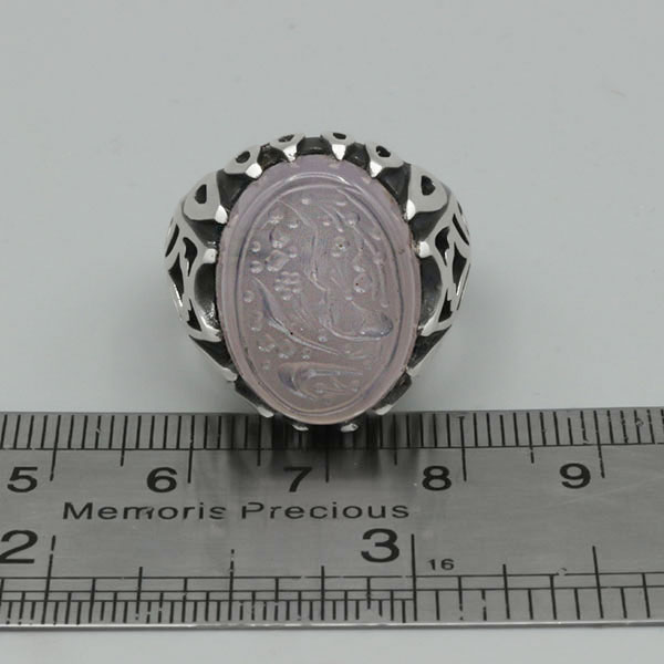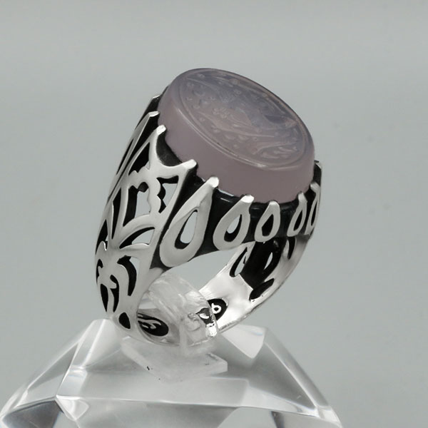 انگشتر عقیق کبود طرح یا رقیه (س) با نقره ۹۲۵ عیار ساخته شده است. سطح صیقلی و کاملا صاف و یکنواخت این محصول علاوه بر درخشش و ایحاد جلوه بینظیر، این انگشتر را به یک اثر هنری تبدیل کرده است. نقش و نگاره های رکاب با ظرافت و دقت بالا انجام شده و رکاب دارای کیفیت بالایی میباشد که از استحکام خوبی برخوردار است. همچنین روی نگین این محصول عبارت یا رقیه (س) حکاکی شده است که بار معنوی آن را افزوده است. کیفیت این حکاکی مناسب ارزیابی می شود و توسط دست یکی از هنرمندان مشهدی انجام شده است. انگشتر قابلیت سایز شدن برای تمامی سایز ها را دارد.
