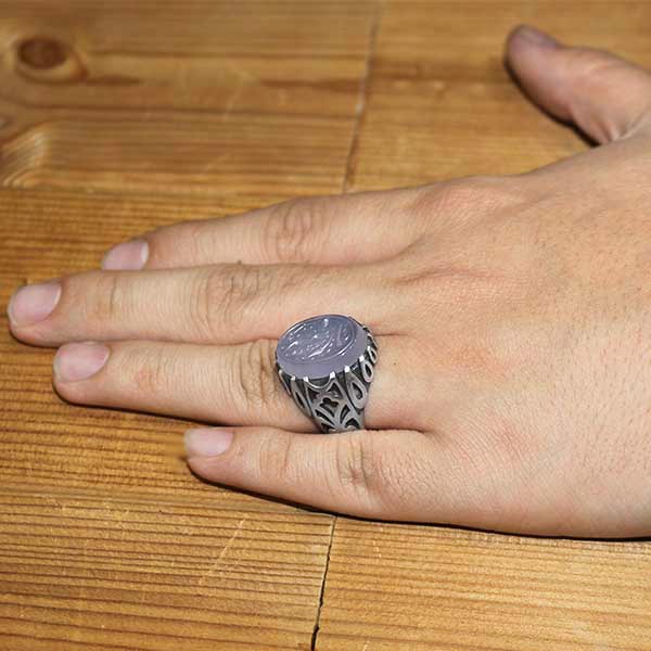انگشتر عقیق کبود نقره مردانه طرح یارقیه (س)