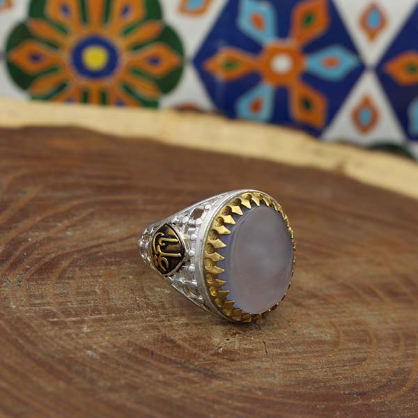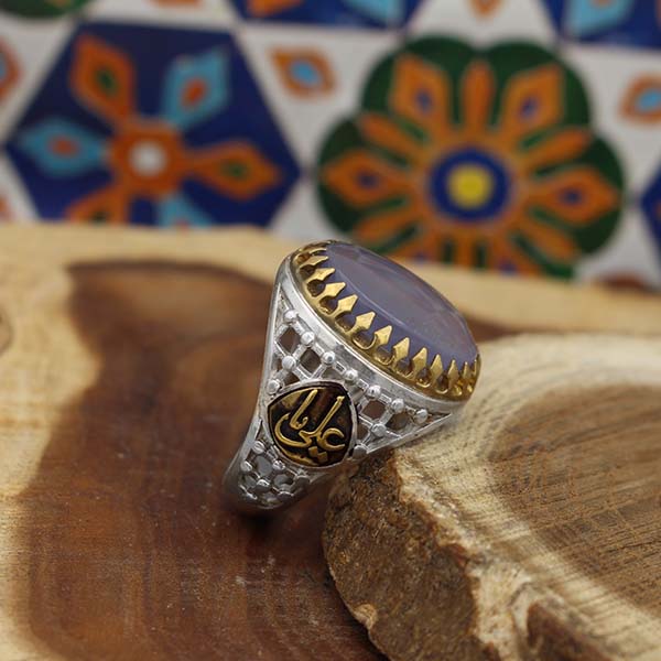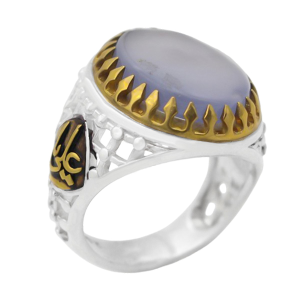 انگشتر عقیق کبود یمنی نقره مردانه طرح یاعلی