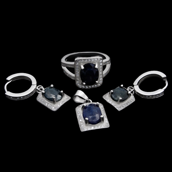 نیم ست یاقوت کبود الماس تراش نقره زنانه طرح عابده