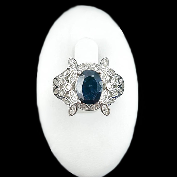 انگشتر نقره زنانه طرح بارانا با سنگ یاقوت کبود الماس تراش