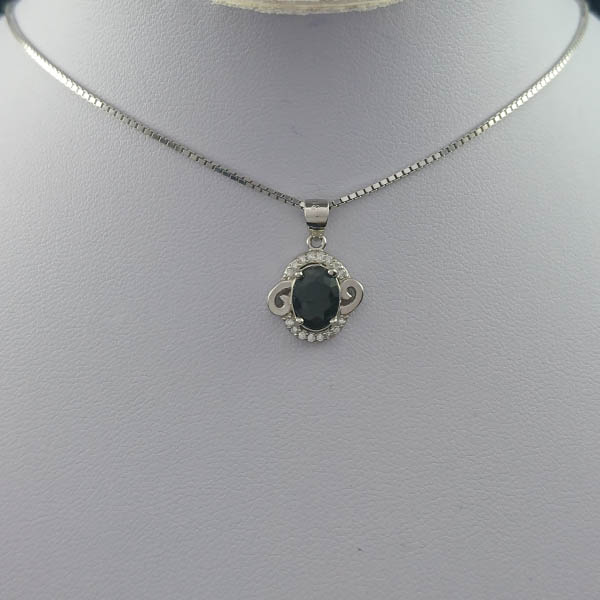 گردنبند نقره زنانه طرح النا با سنگ یاقوت کبود الماس تراش