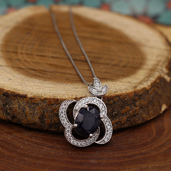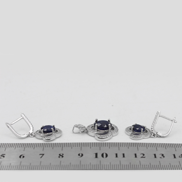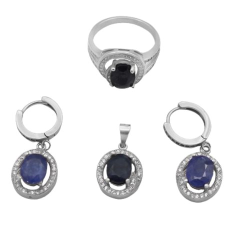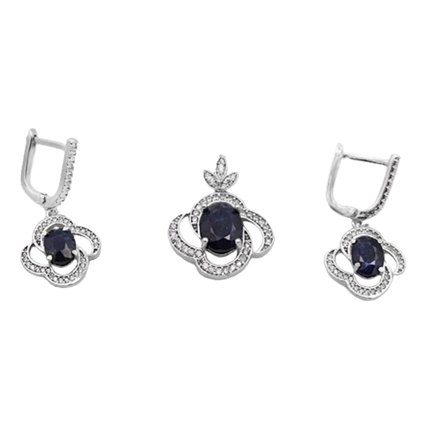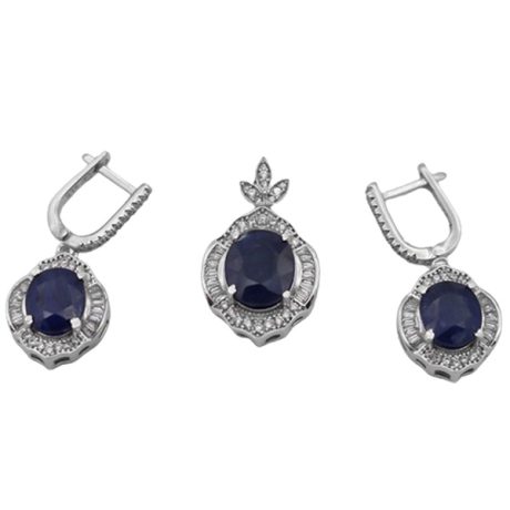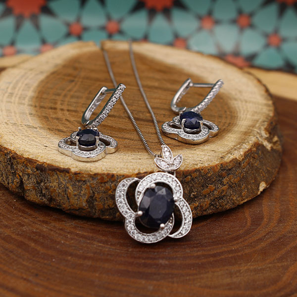 نیم ست یاقوت کبود الماس تراش نقره زنانه طرح انسیه