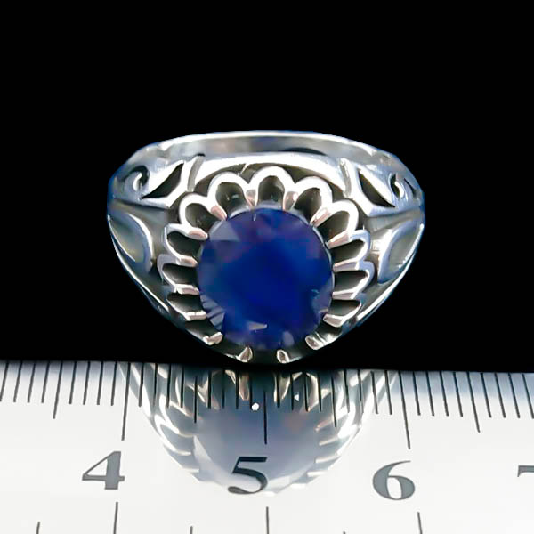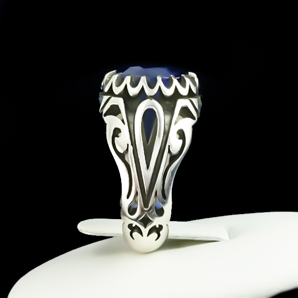 انگشتر نقره مردانه طرح رامان با نگین یاقوت کبود الماس تراش