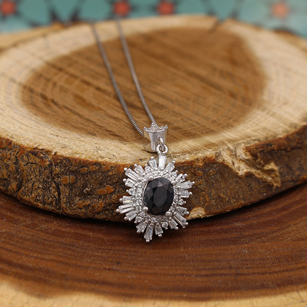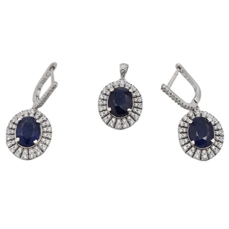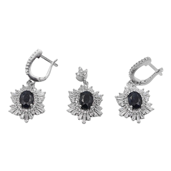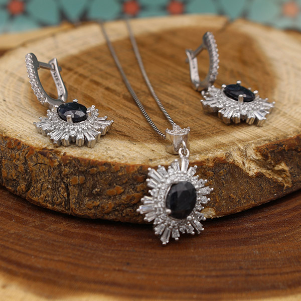 نیم ست یاقوت کبود الماس تراش نقره زنانه طرح رکسانا