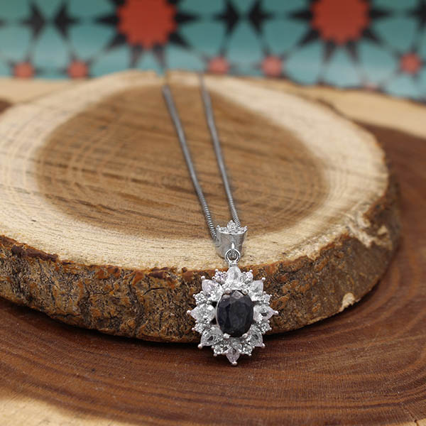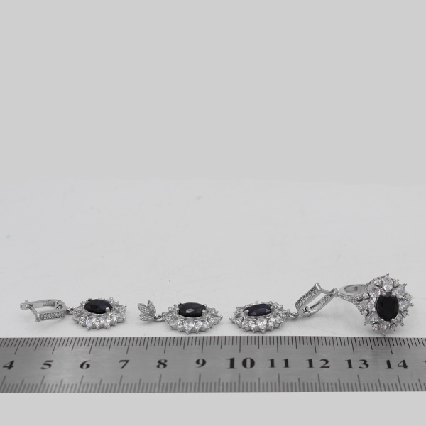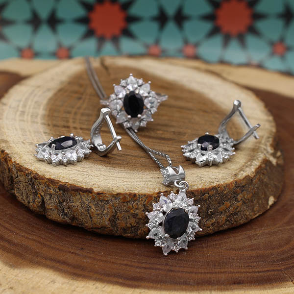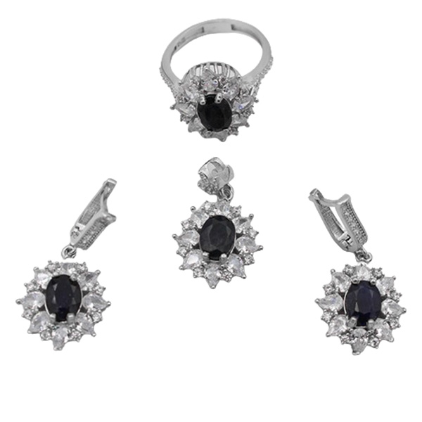 نیم ست یاقوت کبود الماس تراش نقره زنانه طرح رومینا