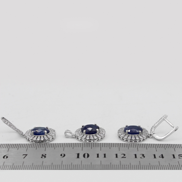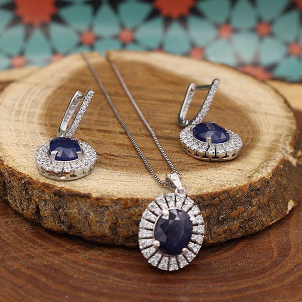 نیم ست یاقوت کبود الماس تراش نقره زنانه طرح سارا