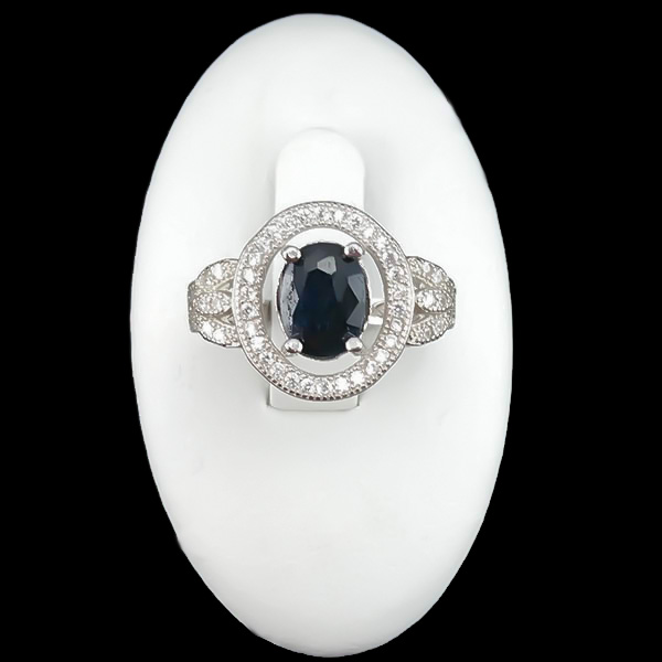 انگشتر نقره زنانه طرح یگانه با سنگ یاقوت کبود الماس تراش