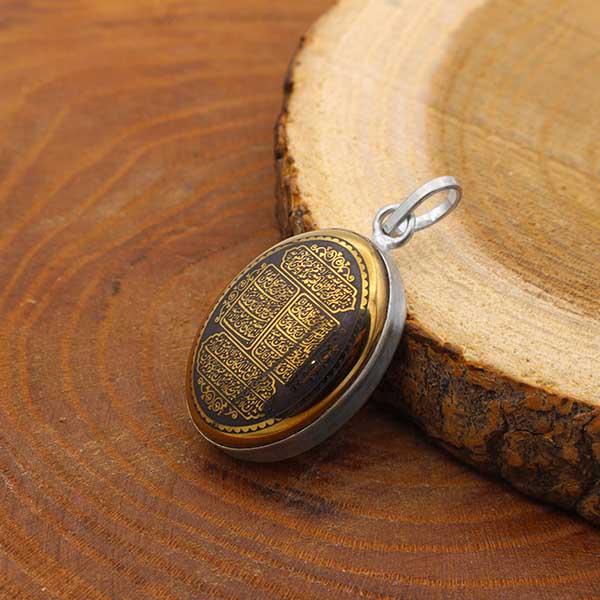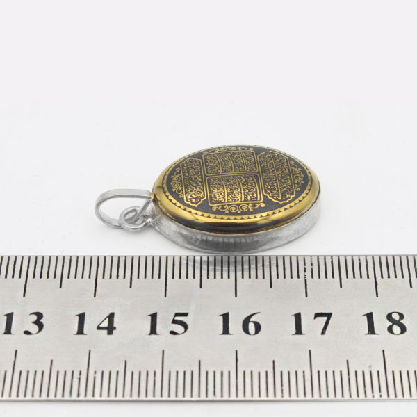 گردنبند حدید صینی نقره طرح چهار قل + حرز امام جواد (ع) + تربت امام حسین (ع)