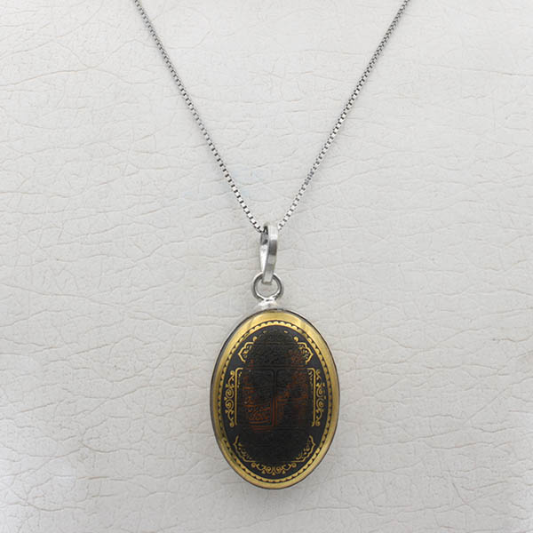 این گردنبند دست ساز است و به صورت پشت بسته ساخته شده و در پشت نگین حرز صغیر امام جواد علیه السلام قرار داده شده است. حرز امام جواد خواص بسیاری دارد و در کتب اسلامی از آن نام برده شده است.