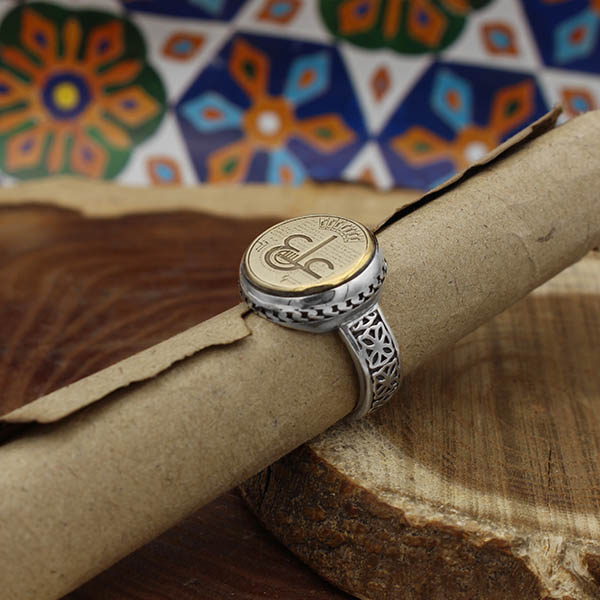 انگشتر حرز امام جواد (ع) نقره مردانه و زنانه طرح دایره ای عین علی + تربت امام حسین (ع)