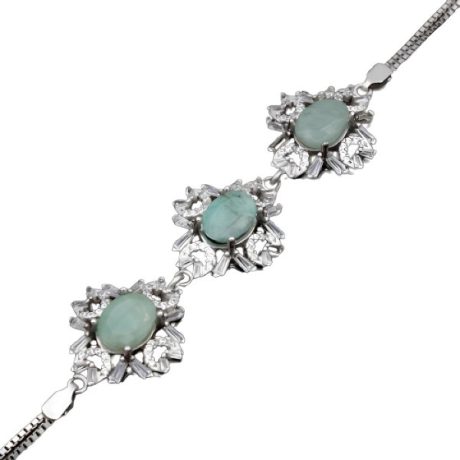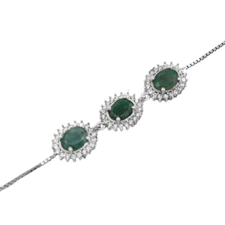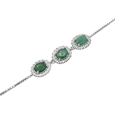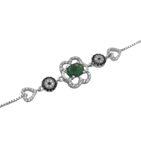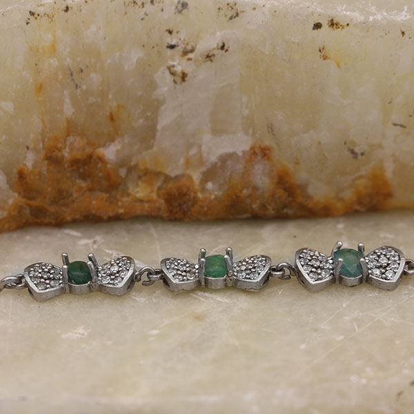 دستبند زمرد الماس تراش نقره زنانه طرح دلبر