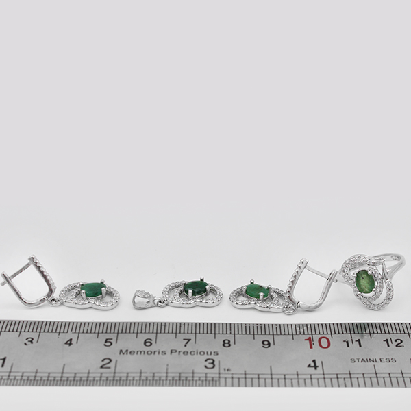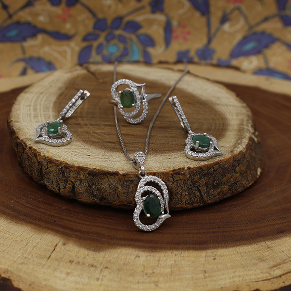 نیم ست زمرد زامبیا الماس تراش نقره زنانه طرح قلب